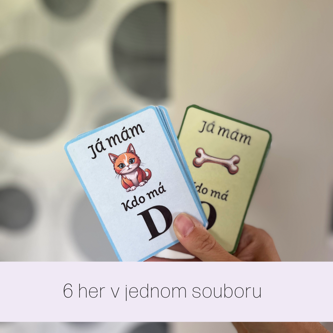 6 variant oblíbené hry Já mám kdo, má. S tímto materiálem zábavnou formou procvičíte počáteční hlásky (písmenka)