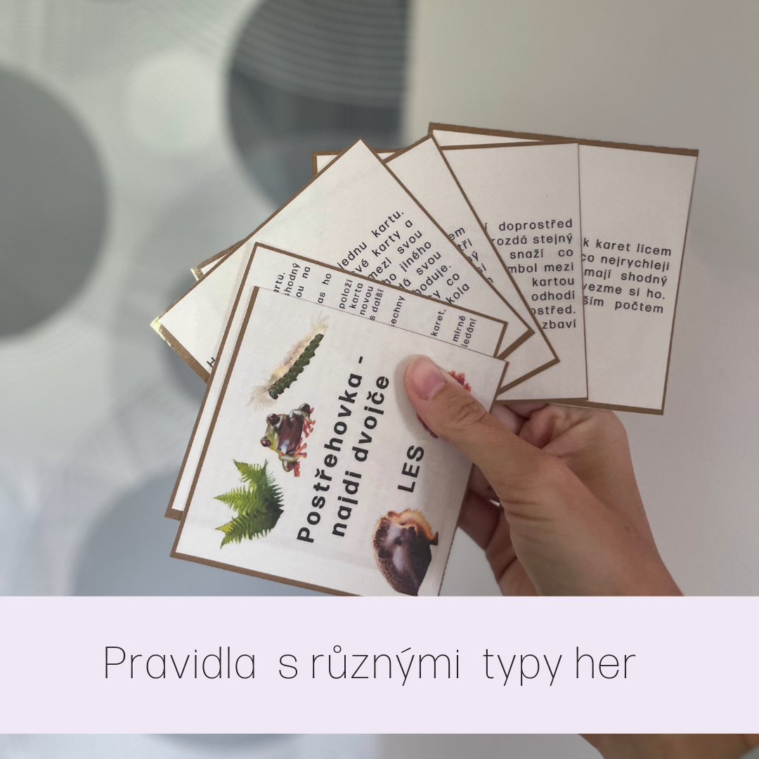 Součástí materiálu jsou i karty s pravidly a popis různých variant her.