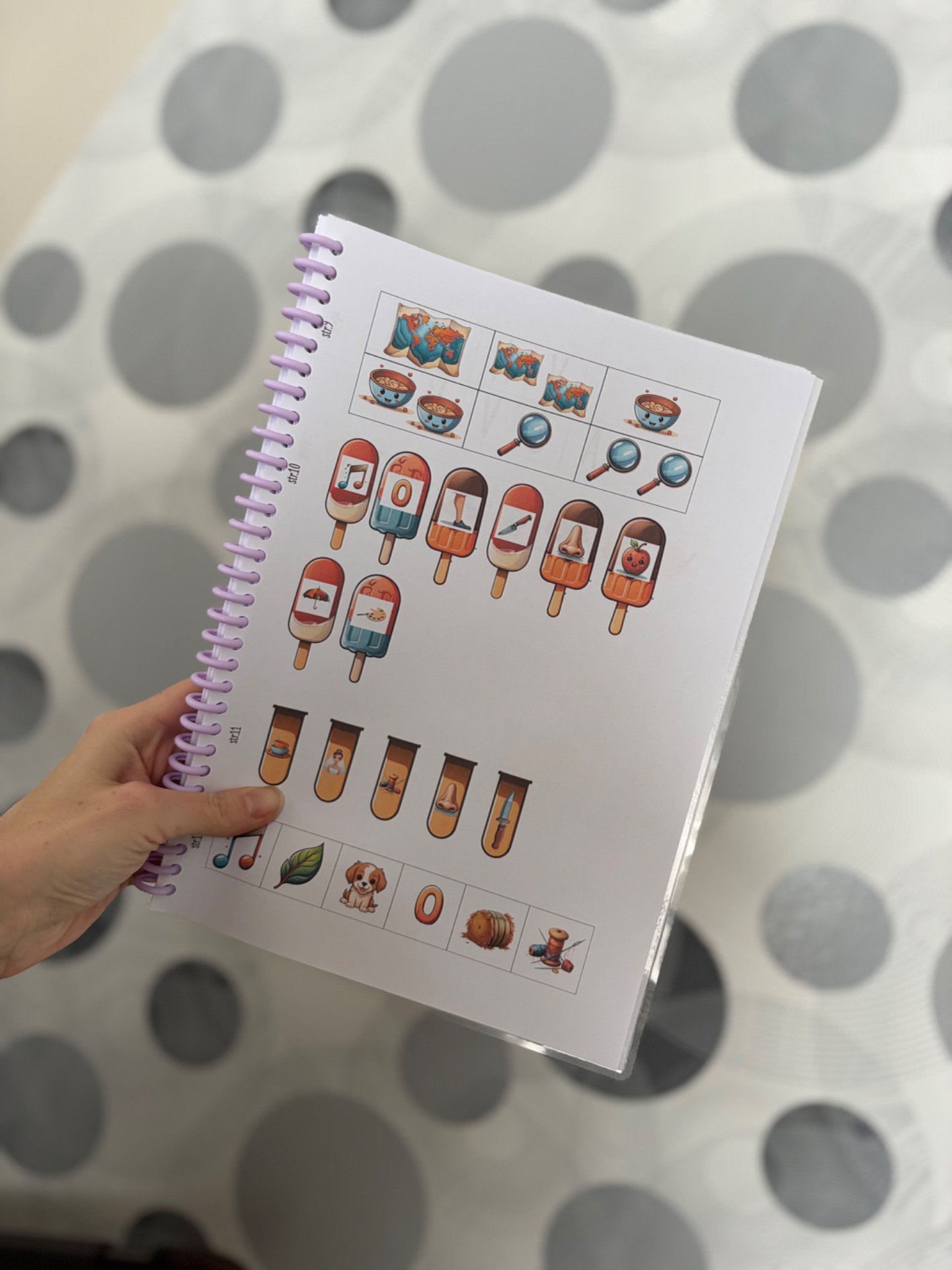 • Obrázkové kartičky: Uvnitř najdete veselé kartičky, které budete stříhat a lepit, takže si krom čtení procvičíte i jemnou motoriku.