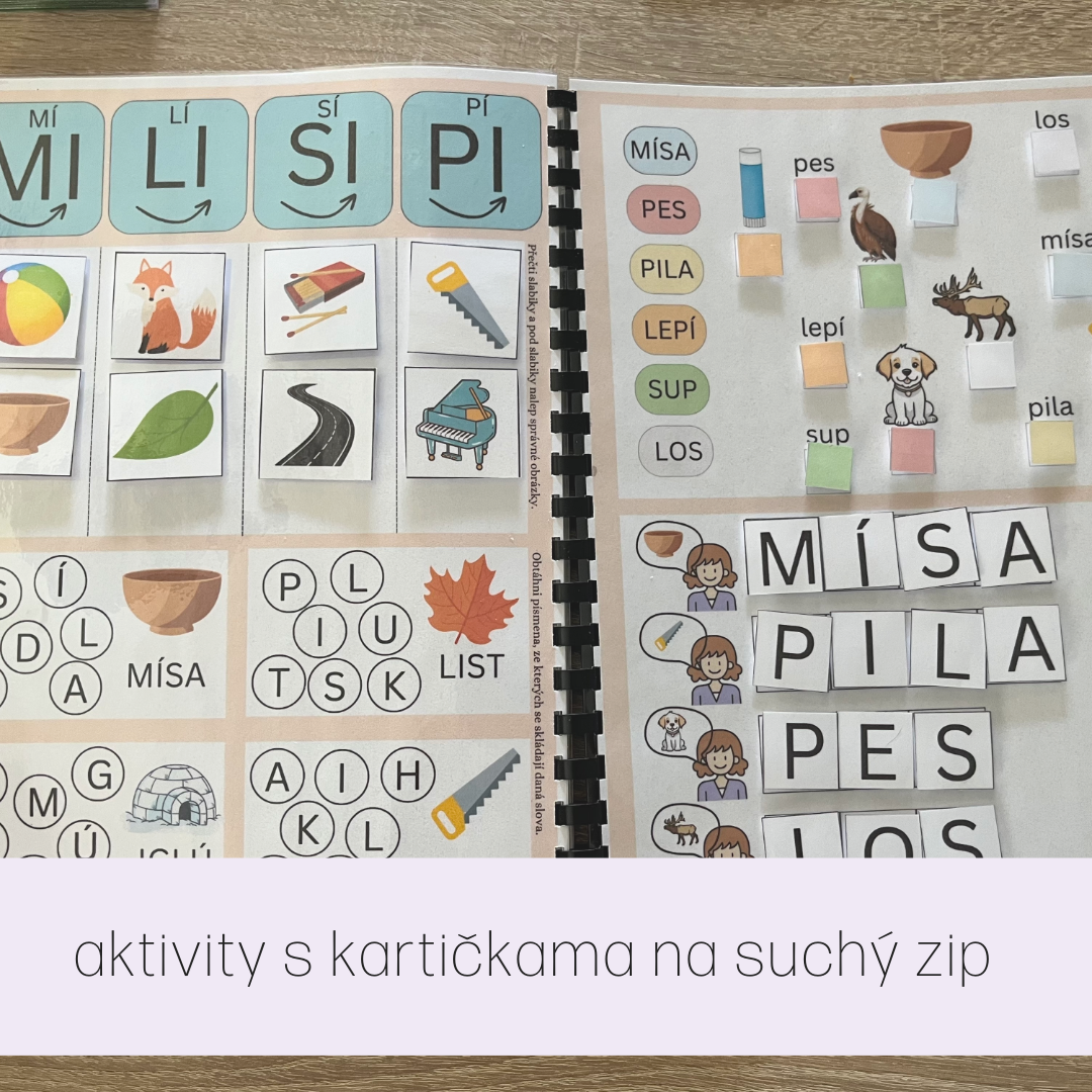 Aktivity slouží k upevnění samohlásek a písmen M, L, P, S.