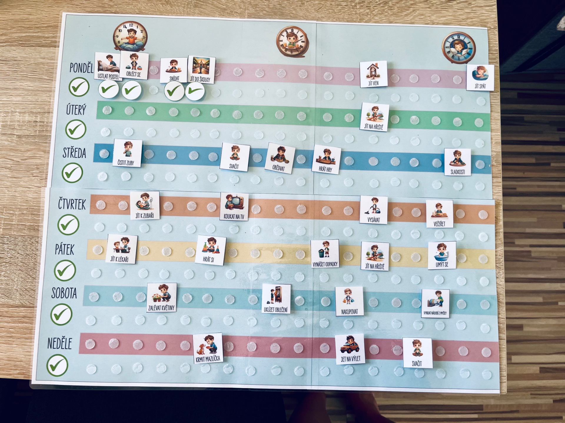 Tydenni režim se zakladními piktogramy s aktivitami, který Vám po odeslání objednvky dorazí do emailu ve formátu PDF.